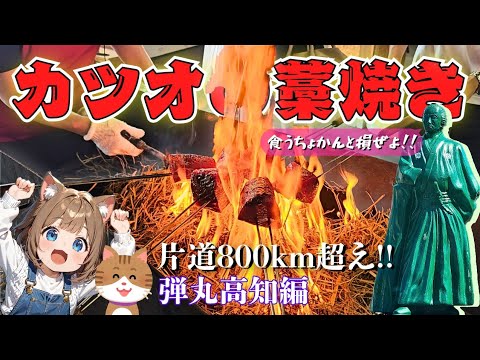 【土佐タタキ道場】自分で焼いた藁焼きタタキはうまいぜよ!!戻り鰹を藁で焼いてその場で食す!!初めての高知県【カツオの藁焼き】