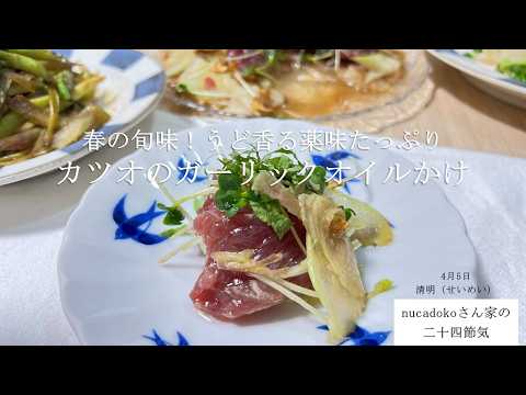 【うど香るカツオのガーリックオイル】カツオのたたき / 毎日happy / アレンジレシピ / 独活 カツオのたたき X Facebook はてブ Pocket LINE コピー 2026.04.06 ご視聴ありがとうございます。 春のかつおは「初カツオ」と呼ばれ、脂身よりも赤身が多く、さっぱりとした味わいが特徴。