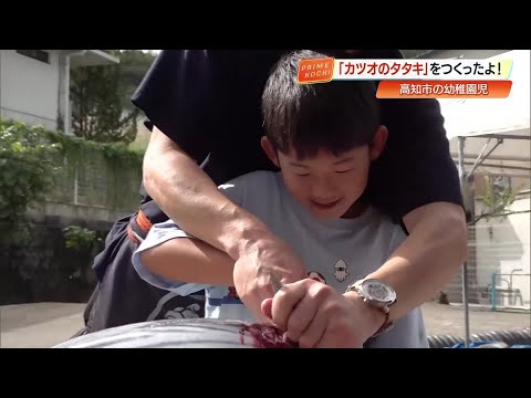 カツオのたたき わら焼きに本格挑戦!園児たちが作った「カツオのタタキ」に笑顔あふれる【高知】 (25/10/20 20:06)